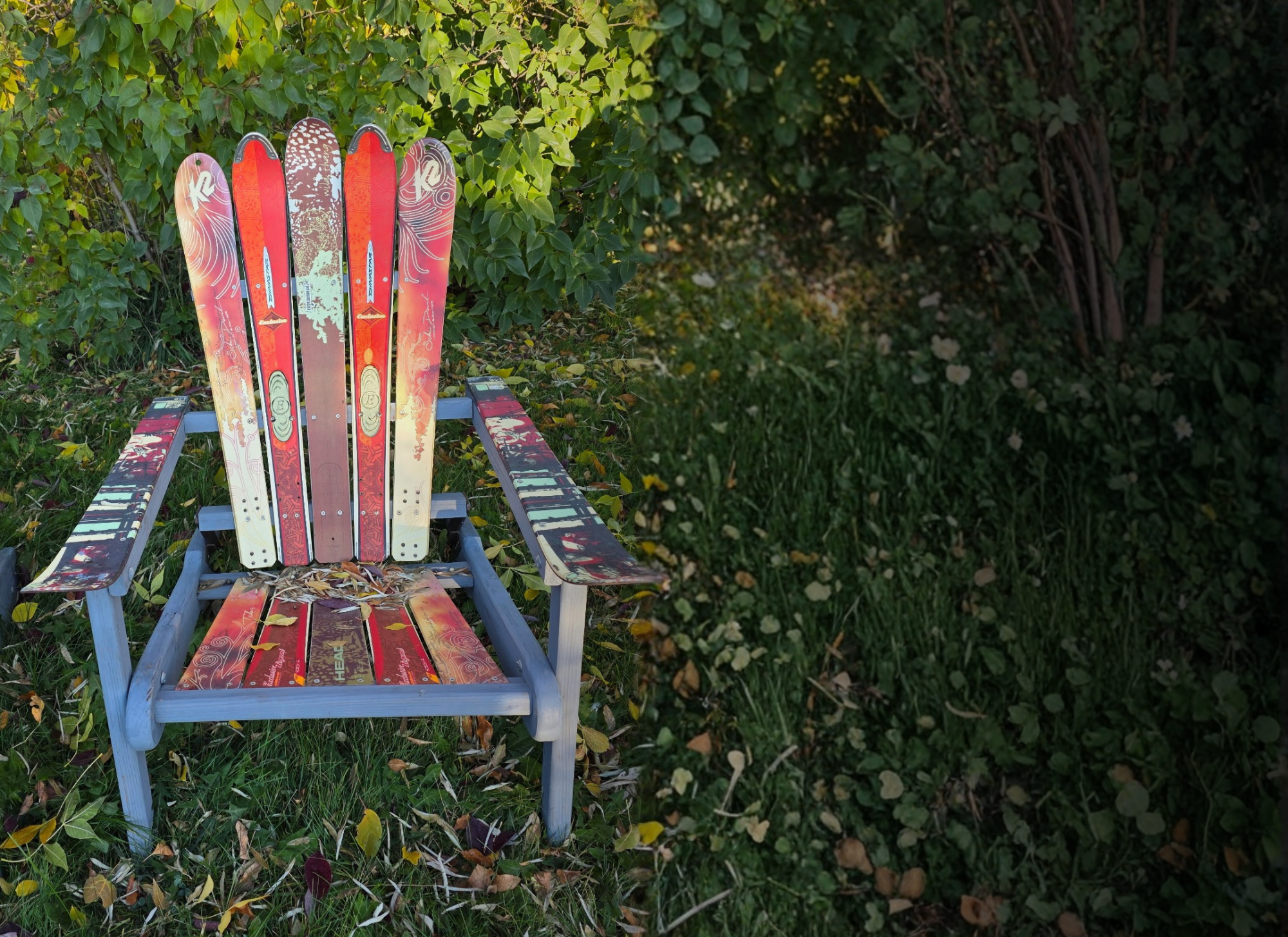 Foldable Adirondack built from real skis.